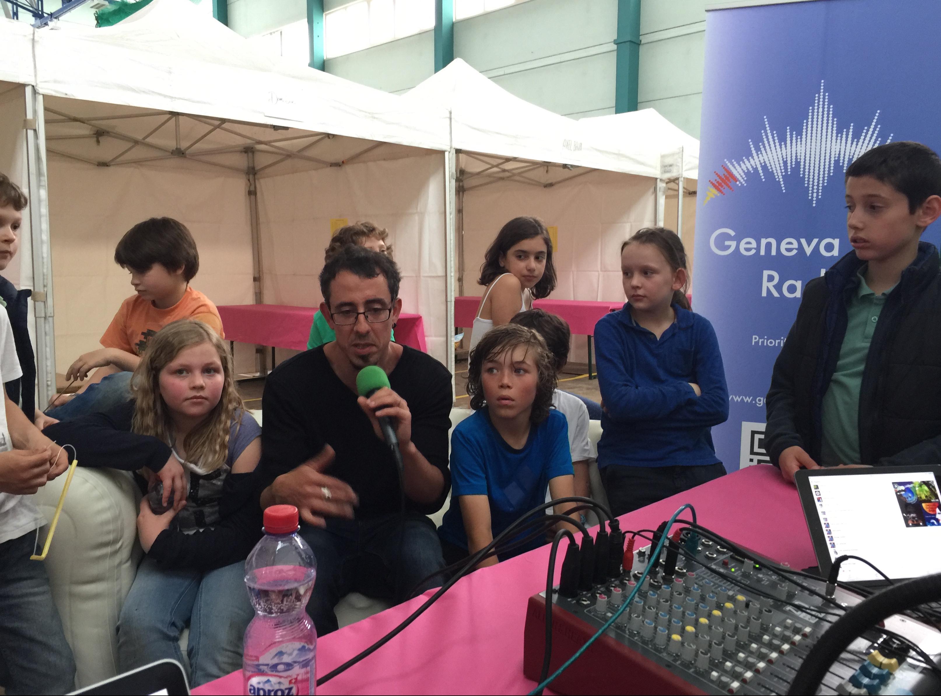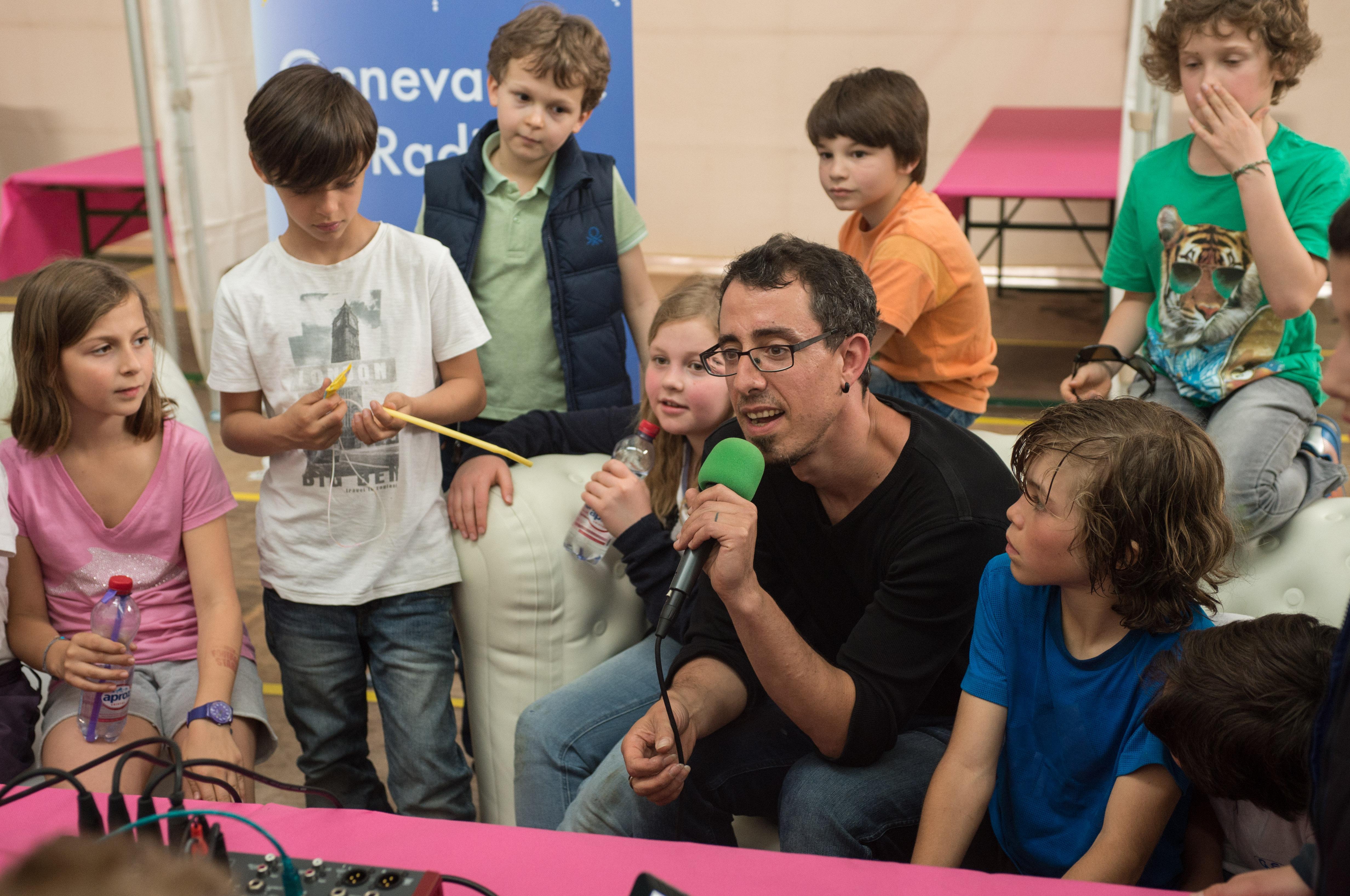 Visite de la classe 6p école Contamines durant les préparatifs de la fête le 27.05.2016
